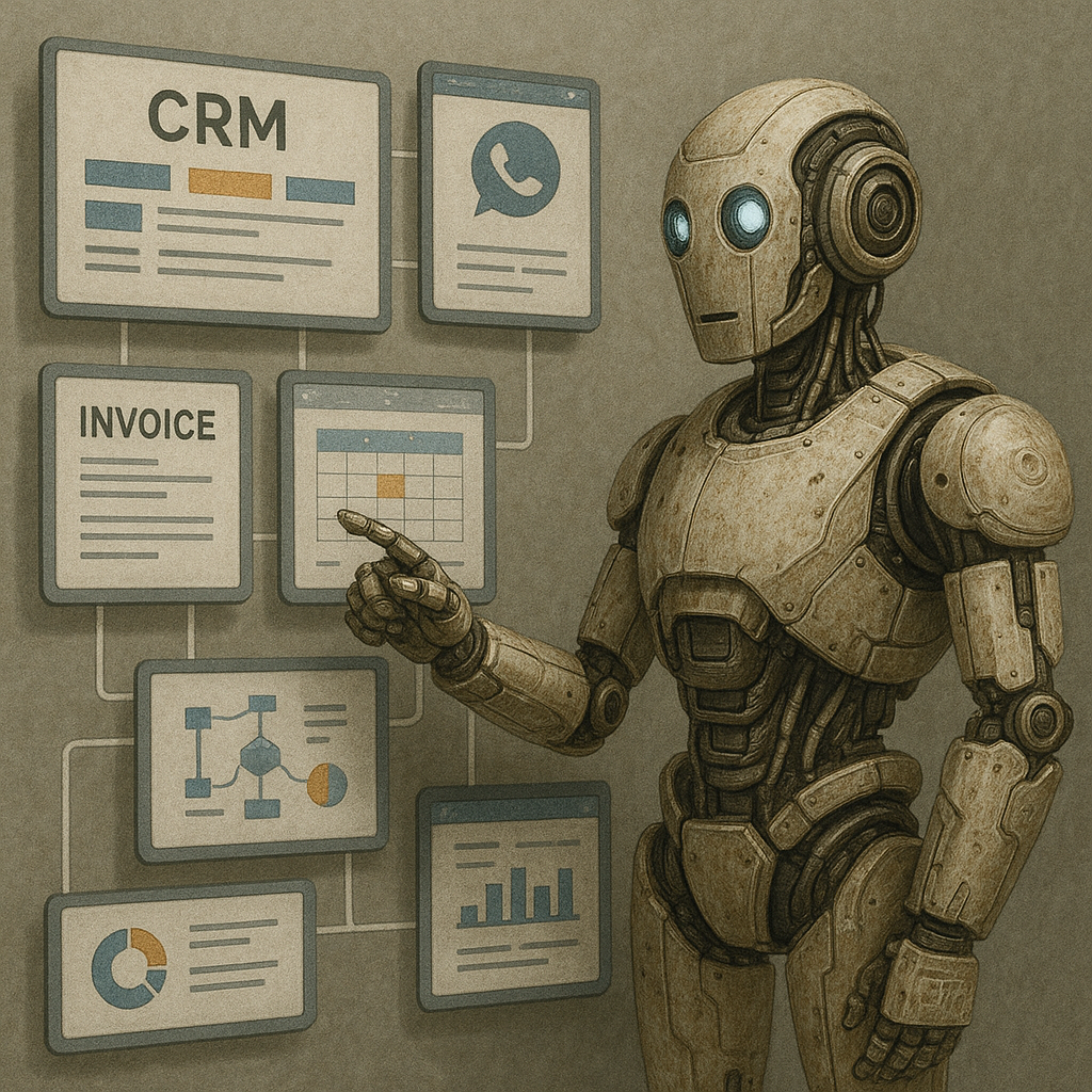 La automatización completa de tu empresa – Integración de CRM, WhatsApp, facturación, agenda, ventas – Flujos automatizados – Reportes y dashboards – Eliminación de tareas repetitivas
